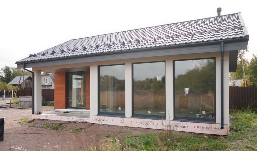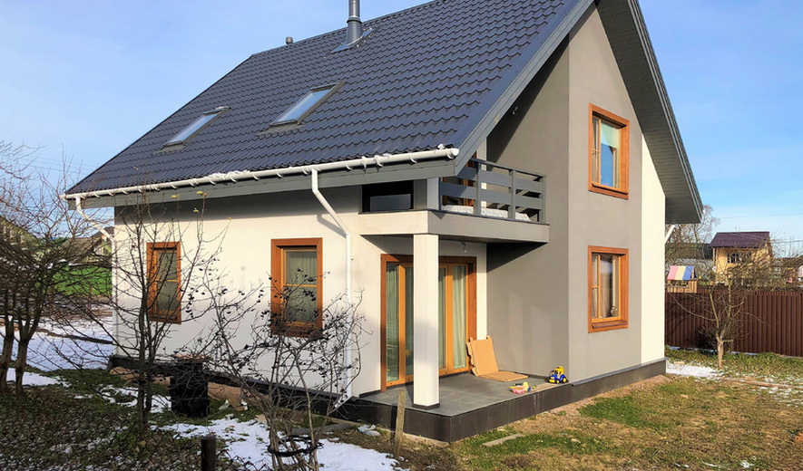 Проект дома 7.58x7.38 метров, общей площадью 55