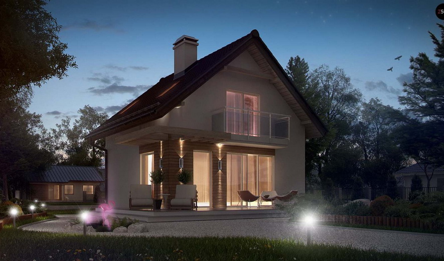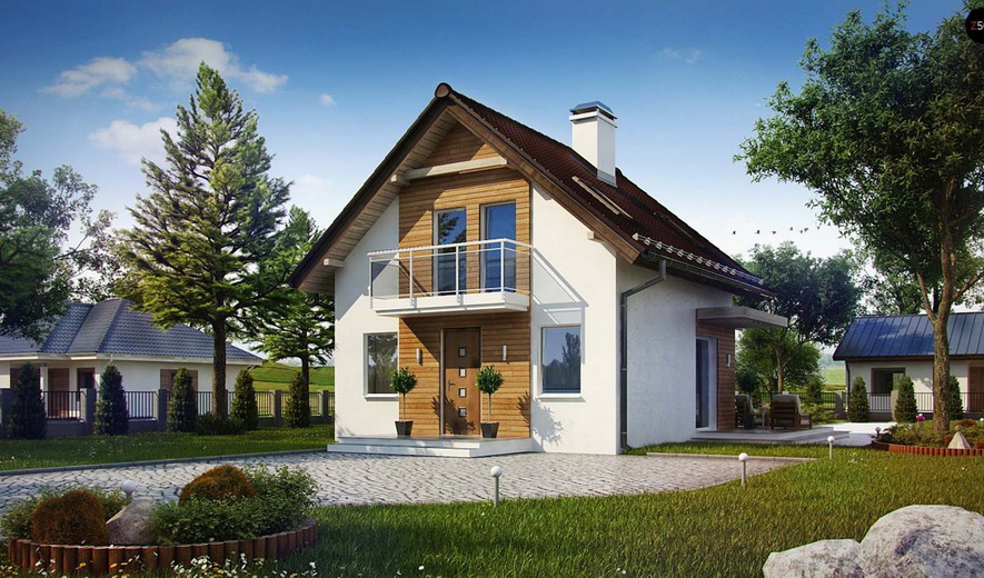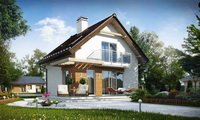 Проект дома 7.58x7.38 метров, общей площадью 55