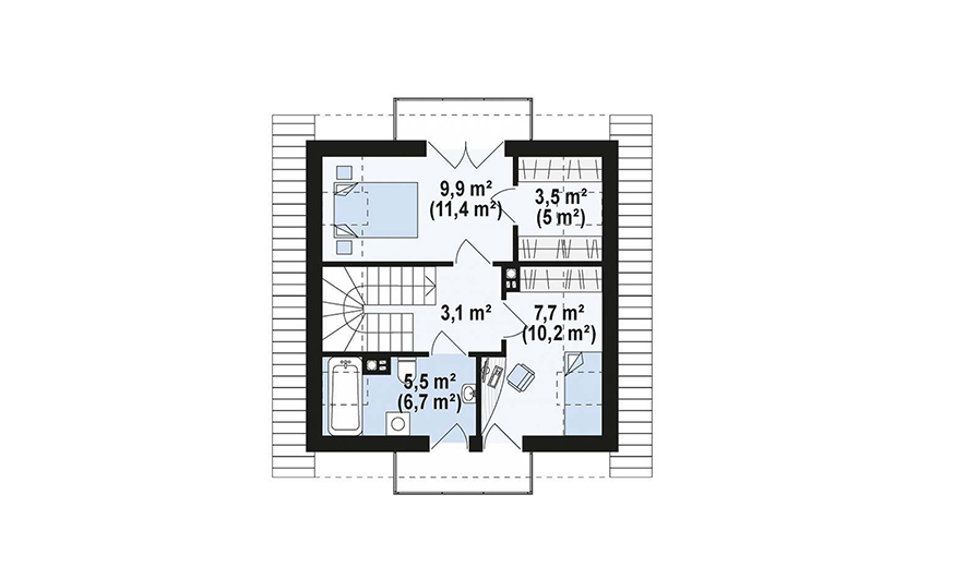 Проект дома 7.58x7.38 метров, общей площадью 55