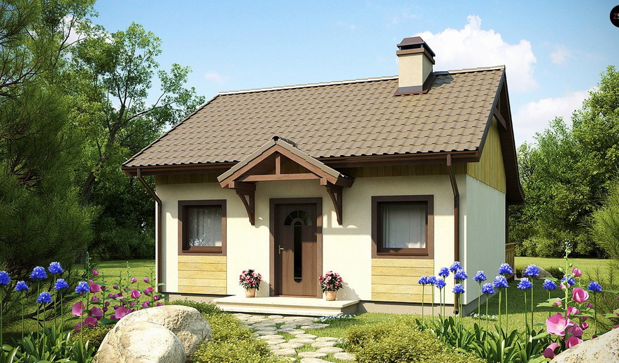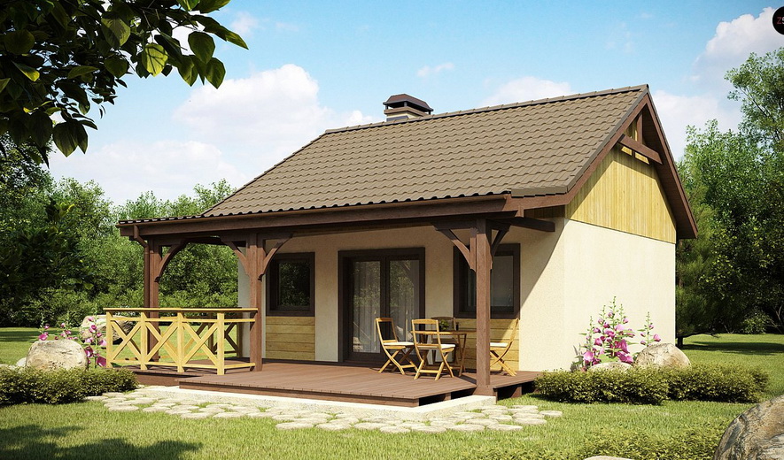 Проект дома 7.58x7.38 метров, общей площадью 55