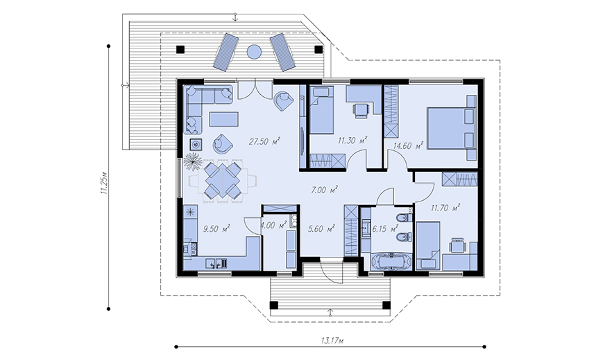 Проект дома 10.81x7.81 метров, общей площадью 133